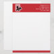 Briefkoppen voor cateringbedrijven, restaurants en levensmiddelenbedrijven. Het ontwerp omvat chef-kok met afgedekte schaal, rode en witte ingedrukte achtergrond aan de rode rand. Eenvoudig aan te passen met uw details.