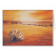 Les tonalités chaudes et d'or indique que le soleil de soirée place. Sans n'importe quel célibataire, il y a seulement une coquille géante laissée sur la plage, comme si elle écoute le chuchotement des marées. Moulant une longue ombre, la coquille précise l'approche de la nuit et la solitude de l'esprit. Une vague des marées a battu le rivage, cassant le silence et le calme de l'image entière. Le central de l'image, un rayon de lumière du soleil passant par l'horizon, la suggérant va finir le jour. Les nuages velus de flottement donnent à cette image une atmosphère plus solitaire.