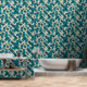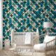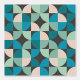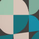 Dit moderne patroon uit het midden van de eeuw heeft turquoise en groene geometrische vormen.