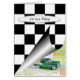 Vintage-auto met zwarte en witte gevlochten vlag voor specifieke naam. De naam kan worden uitgegeven.