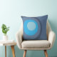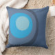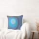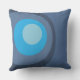 Retro style big circle pattern in light and dark blue on throw cushions.