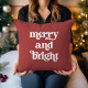 Dit leuke en stijlvolle kerstkussen zegt "vrolijk en helder" in trendy witte boho, retro typografie op een feestelijke rode achtergrond.