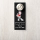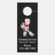 Schoonmaakservice buurtdeurknop adverteren sjabloon met afbeelding van een retro reinigingskarakter en eenvoudige lay-out aan beide zijden in dit slimme tweezijdige ontwerp. Gebruik ons schoonmaakkarakter op onze deurhangers of vervang het schoonmaakkarakter door uw eigen bedrijfs-logo of -afbeelding om dit uw eigen te maken om een specifieke buurt te targeten die uw diensten promoot.