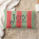 In kleurrijke retro-stijl heeft dit gedurfde gestreepte werpkussen een modern kleurenpalet uit het midden van de eeuw van koraalrood en zacht groen met kleine beige accentstrepen. Whimsical Joy to the world tekst in houtskoolgrijs maakt het ontwerp compleet. Het maakt een geweldig thuisaccent tijdens de kerstvakantie.