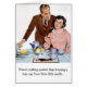 Een retro man en vrouw uit de jaren vijftig zijn aan de ontbijttafel. Terwijl hij zich voorbereidt om voor de dag naar het werk te gaan, legt hij zijn hand op haar schouder, glimlacht en leunt naar haar toe om iets tegen haar te zeggen. Ze glimlacht naar hem toe. Het bericht op de kaart: "Er is niets zoeter dan een man te horen zeggen dat die drie kleine woorden je gelijk hadden."