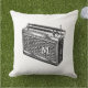 Rétro illustration de radio. Coussin personnalisable d'extérieur avec le monogramme. Vous pouvez facilement changer le monogramme (police, taille, couleur), la position et la taille de l'illustration et de la couleur d'arrière - plan de changement en cliquant sur le bouton de personnaliser.