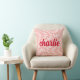 Gooi het hoofdkussen met een licht blush roze, gedraaid dambordpatroon en jouw naam in een rood, retro stijl lettertype.