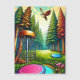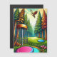 Retro disc golfbaan met Eagle vliegen over de pijnbomen ai kunst met kleuren en camping vibe.