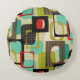 16-inch rondwerpkussens met een afbeelding van 50 S aan beide zijden van zwarte, bruine, rode en mosterdachtige lijsten, zwarte en gele rechthoeken met patrouilles, turquoise en witte vierkanten op bruin. Zie bijpassende vierkantskussens, accuskussens en kubuskussen. Bekijk het hele collectie van de Nitigtal 50s Pillow in de DECOR | Afdeling Kussens