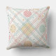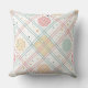 A seamless geometric pattern throw pillow featuring circles, grids, and intersecting lines in a warm retro palette of beige, terracotta, mustard, and sage green. Each circle contains unique textures such as dots and crosshatches, adding depth and character to the design. Inspired by mid-century modern aesthetics, this pattern combines minimalism and playfulness.