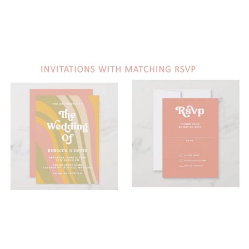 Retro Groovy 70s Green Pink Yellow Wedding SetConçu par Maria G