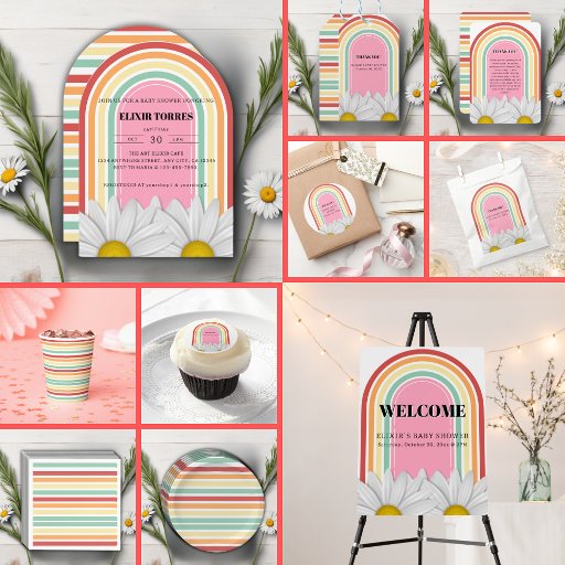Retro Half Daisy Baby Shower Ontworpen door Elixir Torres