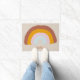 Creëer Een welkomstmat met een aantal goede vibes. Deze deurmat is voorzien van een handgetekende doodle stijl illustratie van een regenboog in mellow, retro kleuren van roest rood, goudkleurig sinaasappel, bleek roze en lichtblauw het is klaar om te worden gepersonaliseerd met een naam of aangepast met uw eigen boodschap.