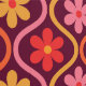 Dit zijn prachtige retro kleurrijke bloemetjes op midden-eeuwse ogee ovale vormen in sinaasappel, rood en roze. Het is geweldig uitziend behang voor iedereen die houdt van retro design