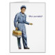 Une illustration vintage d'un rétro laitier qui a rendu visite à toutes les femmes au foyer ennuyées dans le voisinage tandis que sur ses rondes quotidiennes. De retour pendant le jour, il y avait toujours des plaisanteries au sujet au moins d'un enfant dans la famille étant secrètement l'enfant du laitier. Ainsi… qui est votre papa ? L'intérieur de la carte est vide pour votre propre message.