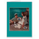 Retro man en wenskaart. tekst binnenin.