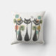 Add a touch of atomic-era charm to your home with this Retro Mid-Century Cat Trio Pillow. Featuring three sleek black cats with whimsical, elongated shapes and playful eyes, this design captures the essence of mid-century modern style. The cats are framed by colorful geometric squares in muted teal, mustard, olive, and coral tones — perfectly balanced with atomic starbursts that complete the nostalgic look.