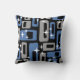 Kleurrijke Retro Mid Century Modern Abstract patroon in zwart grijs en blauw. Mid-century modern (MCM) is een stroming in interieurontwerp, productontwerp, grafisch ontwerp, bouwkunst en stedenbouw die wereldwijd cadeau kende, maar in de Verenigde Staten, Brazilië en Europa populairder was van ongeveer 1945 tot 1970 tijdens de periode na de Tweede Wereldoorlog van de Verenigde Staten. MCM-stijl decor en architectuur hebben een grote heropleving gezien die begon in de late jaren 1990 en vandaag de dag nog steeds voortduurt.