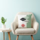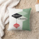 Een vakantiewerpkussen met een moderne uitstraling uit het midden van de eeuw, dit ontwerp heeft geometrische diamantvormen op de voorkant met Merry Christmas-tekst. Een vintage kerstpatroon in fel koraalrood hangt aan het ornament in diamantvorm. De achtergrond omvat een ontwerp van het kleurenblok van wijze groen en wit. Om veelzijdigheid toe te voegen in de manier waarop het kussen wordt weergegeven, heeft de achterkant een coördinerend vakantiepatroon van kerstbomen, ornamenten en sneeuwvlokken die stropdas in het kleurenschema van de voorzijde.
