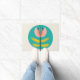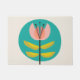 Het abstracte kunstontwerp van 1950 met een zalmroze bloem met groene chartreuse bladeren tegen een turkooiszon, gedaan in de moderne stijl van de midden eeuw.