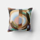 Een retro Kunst Deco stijlvierkant werpt kussen met een moderne abstracte draai met een stijlvol geschilderd grafisch cirkelpatroon in rijke warme browns en zachte poeders blues.