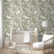 Retro Mod Paisley Olive Sage Green Beige Behang