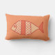 Mid-Century Modern, grillig, retro vispatroon lumbaal kussen, in tinten van pastel tot medium koraal sinaasappel, wit en diep mandarijn / mandarijn sinaasappel, op een medium koraal oranje achtergrond