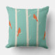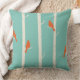 Een kussen met een afbeelding van berkenbomen met oranje vogels in hun takken. Retro groene kleur achtergrond.