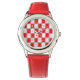 Cette Retro Red and White Starbursts Kid's Watch est tellement adorable l'âge de l'espace que vous ne serez pas en mesure de contenir votre enthousiasme. Et pourquoi voudriez-vous ? Ce design d'inspiration moderne des années 60 est orné d'un arrière - plan gris bruyant et de rangées de rectangles parfaitement imparfaits dans un gris rouge, blanc et colombe. Les étoiles kitschy blanches et rouges sont placées dans des rectangles choisis au hasard. Ce motif mod vous donnera l'impression de sauter dans une machine à remonter le temps et de régler le cadran de façon irrémédiablement vintage !