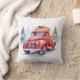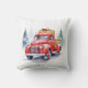 Waterverf retro rode truck met kerstgrenen en sneeuwvlokken in winterbos