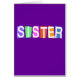 Retrostijl SISTER-ontwerp met witte tekst op kleurrijke achtergrondvierkanten. De creëer van de tekst verschillend effect op donkere of lichte achtergronden. Verander de stijl of de kleur om dit uw te maken! Voeg tekst aan de voorzijde of de rug toe. Dit is een geweldig cadeauidee voor je zus op haar verjaardag, afstuderen of een andere speciale dag.