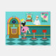 Bedien iets speciaals met deze Retro Soda Fountain Deurmat. De minimalistische kunst, het ontwerp van de cartoon kenmerkt het interieur van de coolste plek in de stad. Het is een sodafontein uit 1950, in al zijn kitschy glory! Tegen de achtergrond van een watermuur kunnen we zien dat posters de specialiteiten van het huis adverteren. Eén poster shows een hamburger en een fles pop voor de koopprijs van 15 cent. Het andere poster shows twee ijsjes in een suikerkegel voor slechts 5 cent. Met zulke prijzen moet het moeilijk zijn om naar je wimpel te kijken! Een zeer bekwaam soda eikel is het bemannen van de blauwgroen teller met gele accenten. Het jonge man met de sterke werkethiek houdt een ijsje met één enkele laag citroengeel ijs - hoewel het, om eerlijk te zijn, ananas zou kunnen zijn! De schoongemaakte lade draagt een pristine, wit shirt met een zwart, boegachtig stropdas en een wit pet met rode accenten. Aan de tegenovergestelde kant van de teller zien we drie rode en chrome stolen. Op een van de ontlasting zit een blonde tiener, wiens mond zeker bewatert. Het is onduidelijk of haar mond over de ijskegel stroomt die op haar weg is of het ijverige jonge man die hem voedt. Ze draagt een roze poodle rok en een zwarte bovenlaag. Haar gele sloten worden teruggetrokken in een klassieke paardenstaart. Naast deze stropdas van een klant is er een kleurrijke, klassieke jukebox met bruine, houtwalan, paneling en kleurrijke neonverlichting. Beter dan dat, is het zeker om alle grootste steen en rolklappen van de tijd te kenmerken! De verdieping van deze moderne ijsparlor uit de midden eeuw is een aqua en blauwgroen, dampbordpatroon dat gewoon schreeuwt om iemand die alle nieuwste dansbewegingen probeert uit te proberen.