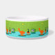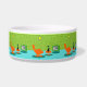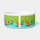 Er wordt gezegd dat honden eigenaars hebben en dat katten personeel hebben. Het gezelschap van deze Retro Space Age Kat Pet Bowl kon het niet meer eens zijn! Het stijlvolle, minimalistische kunstontwerp uit de jaren zestig kenmerkt een strakke, zwarte kat in een moderne woonkamer uit de midden eeuw. De verfijnde kamer is opvallend voorzien van een groene, stenen muur. Het tapijt is aqua met blauwgroen schaduwen. De kamer wordt voorzien van een gele, sputnik lichtfiguur, een oranje fonteinstoel met een bijpassende voetspoel en een groene televisie met konijnenoren. De gelukkige zwarte kat kan op de voetbool voor de televisie worden gezien. Het favoriete show is aan! Op het televisiescherm zien we een zwarte en witte, klassieke tv-familie die alle problemen van het leven oplost in een show van een half uur. Dit ontwerp is doelgericht, als we dat zelf zeggen.