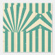 Dit kunstwerk heeft een opvallend retro-geïnspireerd ontwerp met gedurfde, stralende strepen in een blauwgroen en crèmekleurig palet. Het centrale starburstpatroon wordt geaccentueerd door hoekige lijnen en geometrische vormen, waardoor een gevoel van beweging en energie wordt gecreëerd. De versleten, gestresste textuur voegt een gevoel toe, dat doet denken aan oude posters of bewegwijzering. Kleine sterretjes en stippen verspreid over het ontwerp versterken de nostalgische en dynamische esthetiek, waardoor het een visueel aantrekkelijk stuk is.