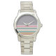 Houd de perfecte tijd met opvallende stijl met deze Retro Stripe Pattern eWatch. Ontworpen met een strakke band van kleurrijke retro-geïnspireerde strepen - mosterd, blauwgroen, roos roze, bordeauxrood en crème - op een glad grijs gezicht, combineert dit unisex-horloge charme met hedendaags minimalisme. De roestvrijstalen band voegt duurzaamheid en een gepolijste look toe, waardoor het perfect is voor alledaagse draag of als een uniek geschenk. Opvallend maar toch veelzijdig, het is tijd om kunst op je pols te draag.