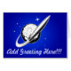 Retro cartoon stijlraket en maanontwerp op een volledig aanpasbare kaart. Geef enkel de groet op de voorzijde en het bericht binnen uit aan voor een Dag van de Vrede of een andere gelegenheid.