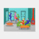 Ce rétro tapis de porte classique de télévision vous rappelle un temps plus simple. Le style des années 1960, minimaliste, dessin de bande dessinée vous aura rechercher les crédits d'ouverture. La conception montre une moitié du siècle moderne, submergée, le salon avec la sarcelle d'hiver et les murs de turquoise et une cheminée rouge et en forme de cône, accomplissent un feu d'hurlement. Tous les yeux sont sur le dégingandé, homme de la maison pendant qu'il fait son entrée grande. Monsieur beau porte un costume bleu et une cravatte orange. Sa belle Mme et fils énergique et jeune se précipitent pour le saluer. La dame de la maison porte une rose indien, la robe de gaine, qu'elle complète tous les bons endroits. La secousse dans ses cheveux foncés est perfection pure. Le junior utilise une chemise rouge et des blues-jean pour son tiret pour voir si son père l'a amené quelque chose. Whoa ! Ne frappez pas au-dessus du plante mis en pot, junior ! Sur le niveau plus bas, nous pouvons voir un divan vert et une table basse orange. Attente ! Nous semblons avoir des invités ! Posés sur le divan sont un homme d'une chevelure foncé dans un costume bleu et la cravate rouge, à côté d'une femme blonde bien faite dans une robe rouge avec un arc rouge dans ses cheveux. Hé ! C'est les collègues du papa. Comment y sont-ils arrivés le premier ? Il est l'un des mystères éternels de la télévision. Il regarde comme nous sommes tous plaçons pendant une grande soirée dans la banlieue de sitcom. Mais, d'abord, nous devons voir si le papa va se déclencher au-dessus du tabouret orange ou l'éviter avec un certain travail de jambes de fantaisie. Ah, le zaniness ! La seule chose manquant de cette scène est la chanson du générique. Et, si vous écoutez étroitement, vous pouvez l'entendre probablement dans votre esprit.