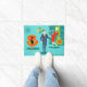 Miel, je suis maison ! Ce rétro tapis de porte de couples de bande dessinée d'âge d'espace vous aura vous sentir envieux des couples de bande dessinée sur un carreau ! Les caractéristiques de conception un arrière - plan de turquoise avec des briques turquoises et un vert olive, cheminée de cône. Un chat lisse et noir se repose sur une chaise orange lisse. Il y a une sarcelle d'hiver, horloge murale de starburst et une lampe pendante à deux étages aux nuances de jaune, du bleu et du noir. Avant et centre, il y a un homme d'affaires distingué, de martini-swilling dans un costume bleu et une cravate orange. À son côté, sa bombe blonde d'une épouse de trophée porte une robe rouge d'agitation et tient un plateau des martini. Va-va-va-voom !