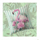 De prachtige, kleurrijke en licht verweerde tinten maken dit een perfect accent voor uw strand of eilandhuis, of een geschenk voor iemand die van flamingo's houdt. Een leuke retro look design, de trendy tropische eiland stijl is charmant, zelfs als je niet op het strand wonen. De achtergrond gestreepte stof is een reproductie van een echte stof.