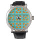 Retro Turquoise en Oranje Trellis eWatch Horloge