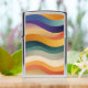 A stylish retro-inspired abstract design featuring flowing wavy stripes in warm and cool tones. Perfect for adding a vintage yet modern aesthetic to your products, this pattern brings a soft, artistic vibe with textured grain details. Ideal for home decor, stationery, and accessories.