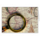 Retrokaart met een vergrootglas op Zuid-Amerika.