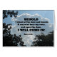 Blauwe hemel met heldere wolken en topjes. Bijbelvers van de berging zijn: "Behold, ik sta aan de deur en klop. Als een man mijn stem hoort en de deur opent, kom ik binnen! Revelation 3:20"