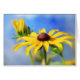 Rudbeckia, Suzanne aux yeux noirs, fleurs et bourgeons, sont lumineux et gais contre un arrière - plan bleu, dans notre jardin du New Hampshire.