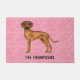 Rhodesian Ridgeback hond op roze harten met naam Deurmat
