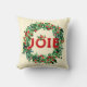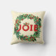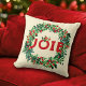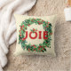Groot woord "JOIE", Frans voor "vreugde" in rijke groenblijvende blauwe en rode bessen krans op crème achtergrond voor effectieve en feestelijke interieur.