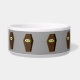 Deze geweldige dierenkom is voorzien van een griezelige kist gemaakt van hout met gouden rand. Het doodskistdeksel is enigszins open en onthult alleen de duisternis binnenin. De gouden plaquette aan de voorkant van de kist heeft spookachtige zwarte tekst waarop RIP staat, zonder enig idee wie of wat er binnen op de loer ligt. Deze leuke maar sinistere doodskist is ideaal voor Halloween. De donkere grijze achtergrond trekt het oog van de waarnemer naar de doodskist.