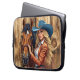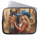Een mooie rustieke bruine houten Westerne stijl laptop mouw met paard en cowgirl rijder
