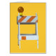 Foto van de barricade voor de wegenbouw op een oranje (aanpasbare) achtergrond. Ideaal voor wegenbouwers, bedrijven.