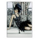3D digitale render van een mooi meisje in de jaren '20 mode stijl jurk in een kamer, grote stad en blauwe lucht in de ramen, schilderij effect